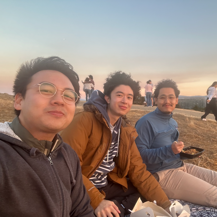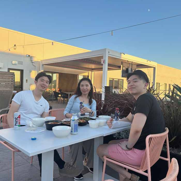 Left, dinner with Mom at the Vasara rooftop; middle, hanging out with Kevin and Yifei and Bedwell Bayfront Park; right, with Hyung Won at Meta.