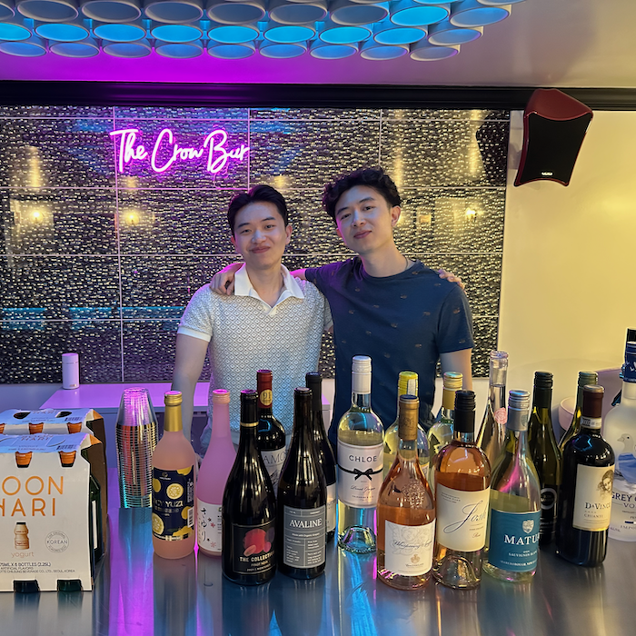 Left, me with Jerry at the bar; middle, Blueprint drinks; right, with Hyung Won and John Ling.